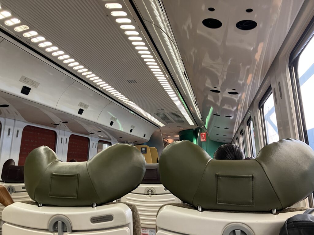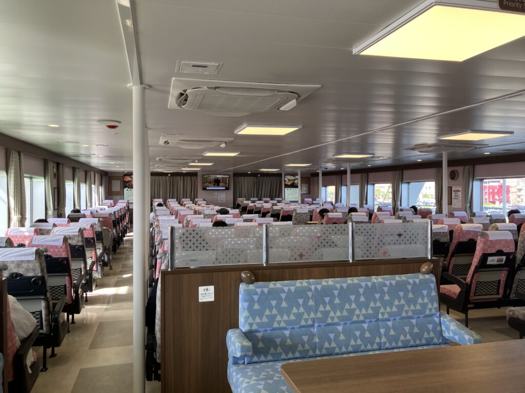 座席は満員ではなかったものの、各列1人は腰掛ける状態で利用客数の多さが伺えました。