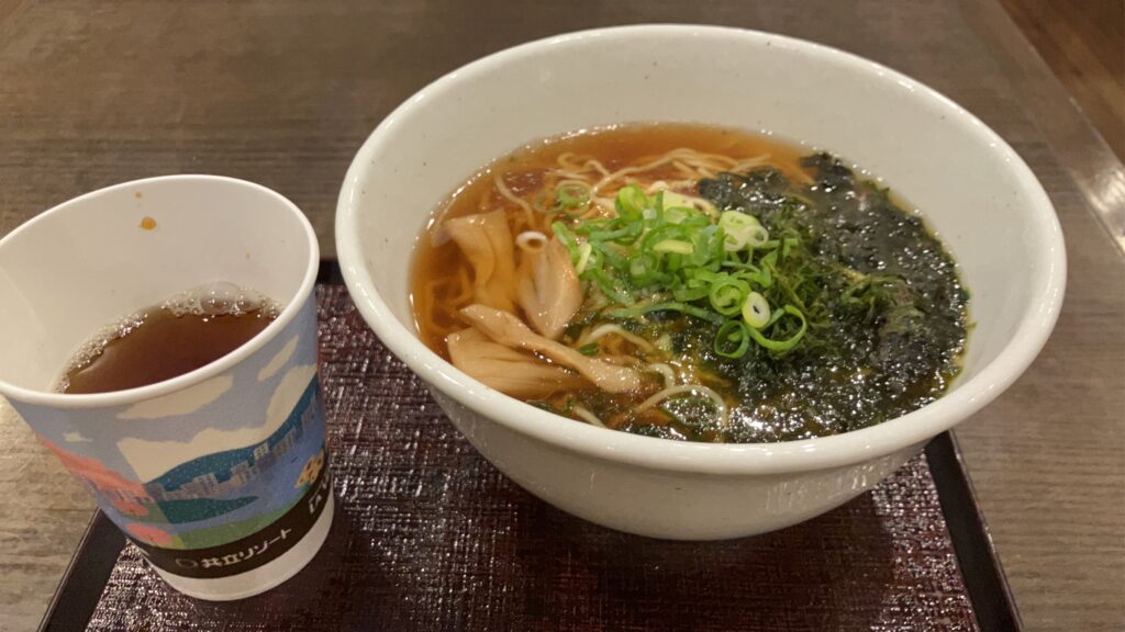 朝と昼は食べすぎたので、夜はドーミーインの夜鳴きそばのみ。