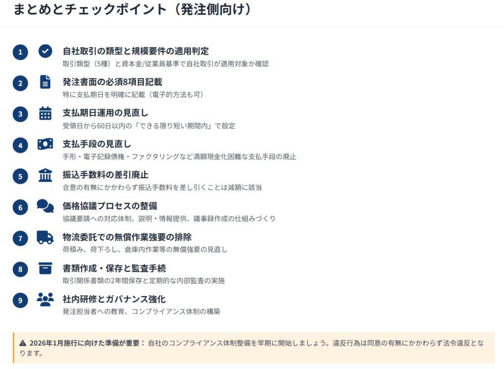 - 不当な給付内容の変更、やり直し:中小受託事業者に責任がないのに、発注の取消し、変更、無償でのやり直しや追加作業をさせること