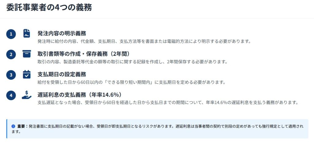 取適法が適用される場合、委託事業者には以下の4つの義務が課されます。